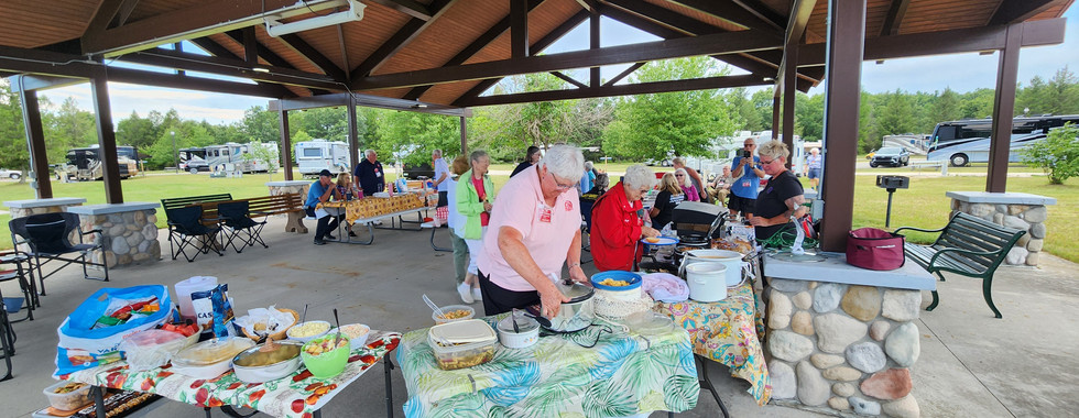 Aimee and Amy furnished the meat for the potluck. We had cheesy hot dogs, pork barbeques and sloppy joes. There, of course, was plenty of salads, vegetables and desserts to go around. Had our business meeting and then played a game of bean bag baseball. We had a lot of fun with this! Had a nice day and the weather worked with us.